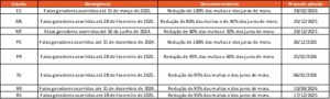 A seguir, apresentamos os programas de anistia e parcelamento de ICMS com prazo de adesão ainda em aberto, indicando seus respectivos períodos de abrangência, percentuais máximos de desconto e prazos para adesão, conforme demonstrado na tabela abaixo e no material anexo.
